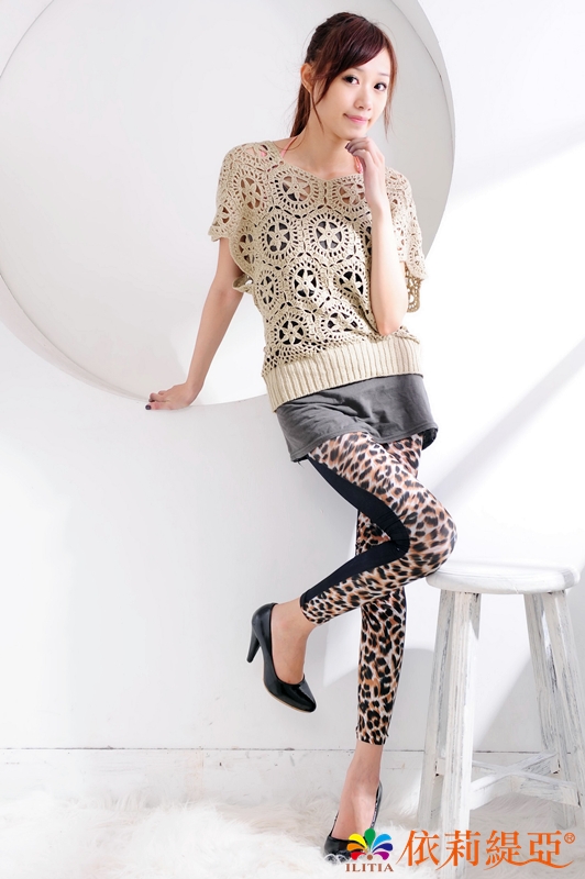 歐美‧搖滾印花9分內搭►雙色拼接大豹紋