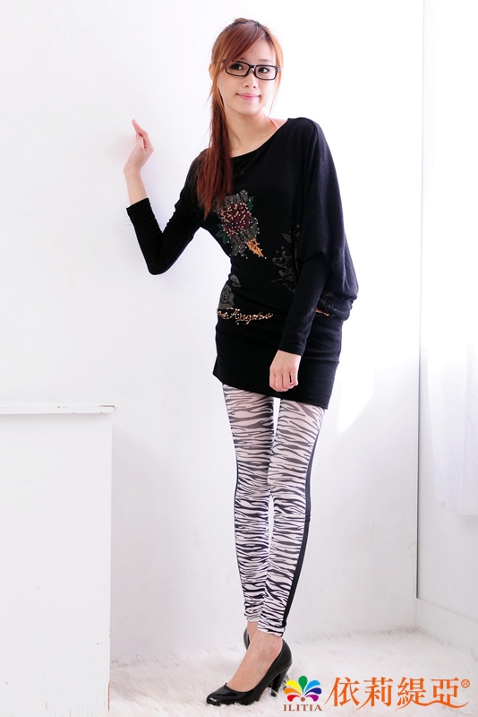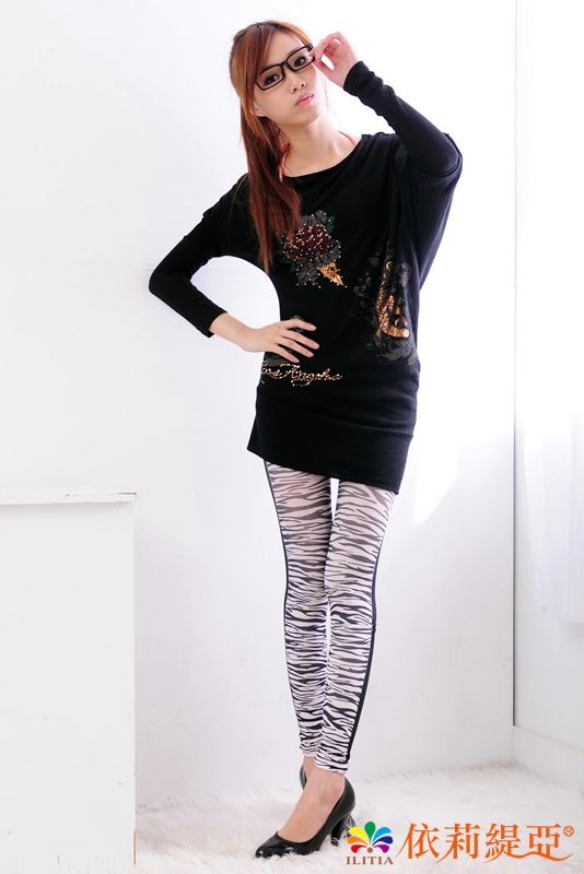 歐美‧搖滾印花9分內搭►雙色拼接虎紋