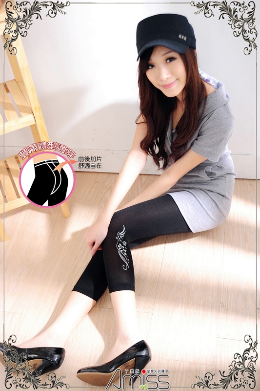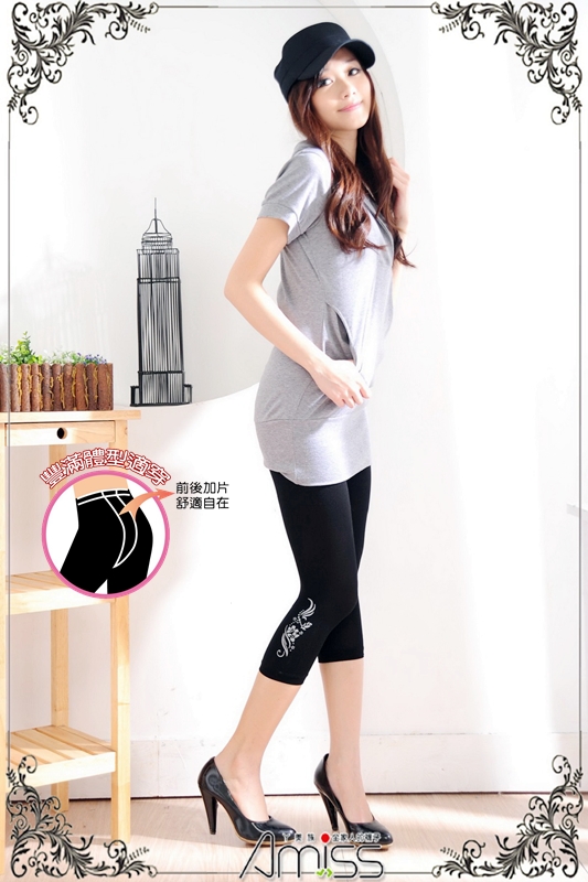 豐滿體型‧孕婦也可以♥內搭七分-花朵圖騰